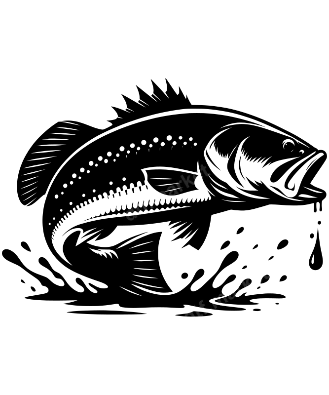 Dynamic Jumping Bass Fish DTF Transfer for Fishing Apparel