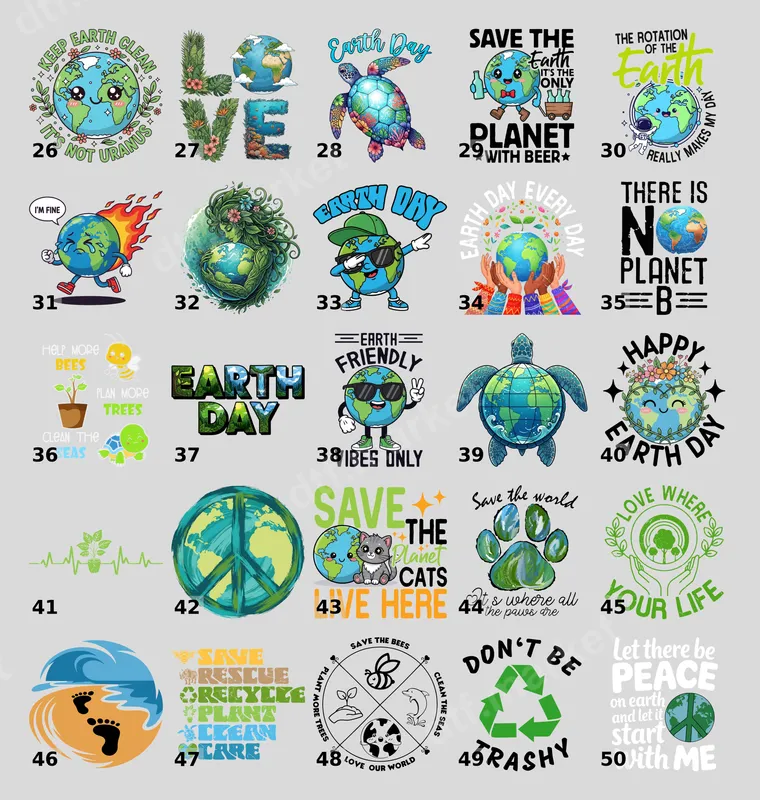 See allThis vibrant DTF transfer features a super cool Earth character sporting sunglasses and giving a peace sign, accompanied by the playful text "EARTH FRIENDLY VIBES ONLY." It's a fun and stylish ready to press transfer that perfectly captures a laid-back, eco-conscious attitude. The design is full of personality, with bright greens and blues that pop, making it an eye-catching statement piece for anyone who cares about our planet. This heat press design is ideal for environmental activists, nature lovers, students, or anyone who wants to promote sustainability with a touch of humor and style. It's perfect for Earth Day events, environmental rallies, school projects, or as a thoughtful gift for friends and family who champion green living. Show off your commitment to the planet at festivals, casual outings, or just everyday wear, spreading positive environmental messages wherever you go. Our high-quality direct to film transfer is incredibly versatile, suitable for application on a wide range of materials including cotton, polyester, and most fabric blends. Applying this iron on decal is a breeze with a standard heat press, typically requiring 300-325°F for 15 seconds with medium pressure. For those without a professional press, a household iron can also be used following specific instructions. The best part? No tedious weeding is required, saving you time and effort for quick and easy customization. Each apparel transfer is crafted using professional-grade DTF film and premium inks, ensuring vibrant colors and exceptional durability. These transfers are designed to be crack-resistant, peel-resistant, and boast a remarkably soft hand feel once applied, making your custom garments comfortable and long-lasting. You can trust in the superior quality of our heat press transfers to deliver a professional finish every time, standing up to countless washes and wears.