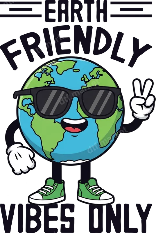 See allThe design showcases a vibrant, cool earth character sporting sunglasses and a peace sign, accompanied by the uplifting message "EARTH FRIENDLY VIBES ONLY." This ready to press DTF transfer is perfect for anyone wanting to express their love for the planet with a touch of fun and positivity. The bright colors and playful style make it an eye-catching statement piece for any garment. This high-quality direct to film transfer is designed for easy application and lasting impact, bringing good vibes wherever it goes. This unique apparel transfer is ideal for environmental enthusiasts, climate activists, nature lovers, or anyone who believes in spreading positive, eco-conscious messages. It's perfect for Earth Day celebrations, outdoor events, casual wear, or as a thoughtful gift for friends and family who share a passion for protecting our planet. Create custom t-shirts for volunteer groups, sustainable living advocates, or simply for personal expression with this charming design. Applying this versatile heat press transfer is a breeze. Our iron on transfer works flawlessly on a wide range of fabrics, including cotton, polyester, and various blends, ensuring great adhesion and durability. For best results, use a heat press at 300-325°F for 15 seconds with medium pressure, then cold peel the film. No intricate weeding is required, making your customization process quick and effortless, whether you're a seasoned crafter or a beginner. Experience the superior quality of our DTF transfers. Each heat press design boasts incredibly vibrant colors that pop, along with exceptional durability, ensuring it resists cracking and fading even after multiple washes. The professional-grade DTF film provides a soft, flexible feel that seamlessly integrates with the fabric, avoiding that stiff, bulky sensation often associated with other transfer methods. Trust in a long-lasting, high-definition apparel transfer that maintains its integrity and appeal.