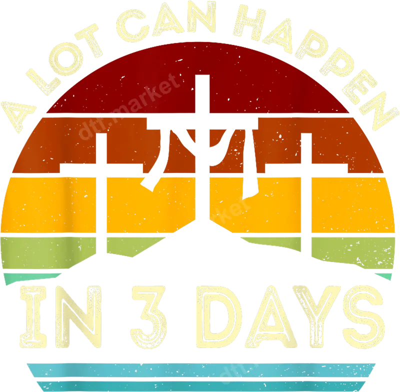 See allThis vibrant DTF transfer captures the powerful message of Easter with a retro sunset and three symbolic crosses on a hill. The distressed design reads "A Lot Can Happen In 3 Days," a heartfelt nod to the resurrection story. It's a ready to press design, making it simple to create inspiring apparel for yourself or your church group. Perfect for individuals seeking to express their Christian faith, this heat transfer is ideal for Easter celebrations, church events, or daily wear. It makes a thoughtful gift for pastors, Sunday school teachers, or anyone who cherishes the spiritual significance of the three days. Share your hope and belief with this unique apparel transfer. Our high-quality direct to film transfer is versatile, working beautifully on cotton, polyester, and various fabric blends. Applying this design is hassle-free with a heat press (300-325°F for 15 seconds, medium pressure) or a standard household iron. Say goodbye to tedious weeding – simply press and peel for a professional finish, just like a high-quality iron on transfer. Experience superior durability and a soft touch with this premium heat press ready design. The colors are incredibly vibrant, resisting cracking and fading wash after wash. Each custom transfer is printed on professional DTF film with a strong adhesive, ensuring your personalized garments look great for years to come.