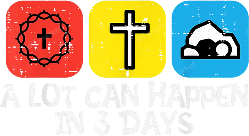 See allThis vibrant DTF transfer features a powerful Christian message: "A Lot Can Happen In 3 Days." The design graphically depicts key elements of the Easter story with three distressed square icons: a cross encircled by a crown of thorns, a standalone cross, and an empty tomb with the stone rolled away. This ready to press design beautifully encapsulates the essence of sacrifice and resurrection, perfect for expressing profound faith. This meaningful heat press transfer is ideal for individuals, church groups, and Christian communities looking to celebrate Easter, Good Friday, or simply display their unwavering faith year-round. It makes a thoughtful gift for pastors, Sunday school teachers, or anyone who cherishes the spiritual significance of Christ's triumph. Create custom apparel for faith-based events, mission trips, or daily wear to share an inspiring message. Our high-quality DTF transfers are incredibly versatile and easy to apply. Designed for a seamless process, this iron on transfer adheres perfectly to a wide range of fabrics, including cotton, polyester, and various blends. Achieve professional results using a heat press set at 300-325°F for 15 seconds with medium pressure, or apply with a household iron. Forget tedious weeding; simply press and peel! Experience exceptional quality with our direct to film transfers. Each design is printed with vibrant, long-lasting colors that resist cracking and fading, ensuring your finished garment looks great wash after wash. The advanced DTF film provides a soft, flexible feel that moves with the fabric, offering superior comfort and durability compared to traditional vinyl transfers.