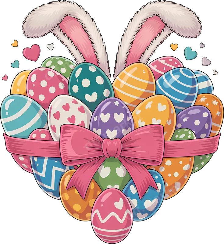 Easter Bunny Ears & Heart Eggs DTF Transfer | Ready to Press Design