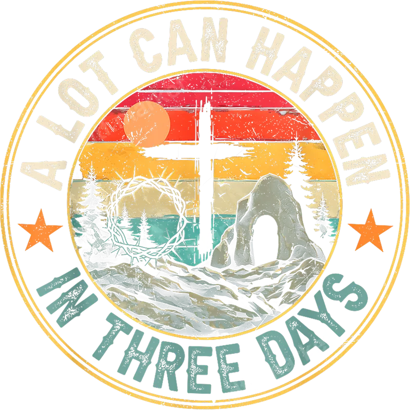 See allThis powerful DTF transfer features a vintage-inspired circular design proclaiming "A LOT CAN HAPPEN IN THREE DAYS," celebrating the Christian message of resurrection. The artwork depicts a rustic cross, a crown of thorns, an empty tomb, and pine trees against a distressed sunset background. It’s a beautifully crafted, ready to press design that combines faith with a classic aesthetic. Perfect for Easter celebrations, church events, or everyday wear to express your faith. This heat press transfer makes a meaningful gift for pastors, Sunday school teachers, church members, or anyone who cherishes the Easter story. Use this iron on decal to create inspiring apparel for family gatherings, retreats, or as a personal declaration of belief. Applying this ready to press transfer is simple and efficient. It adheres flawlessly to various fabrics including cotton, polyester, and their blends. For best results, use a heat press at 300-325°F for 15 seconds with medium pressure, followed by a cold peel. A household iron can also be used, making it accessible for everyone. No weeding is required, saving you time and effort. Experience professional-grade quality with this durable t-shirt transfer. Our direct to film transfers boast vibrant colors that resist cracking and peeling, ensuring your designs last wash after wash. The soft-touch feel integrates seamlessly with the garment, providing a comfortable and professional finish that rivals screen printing.