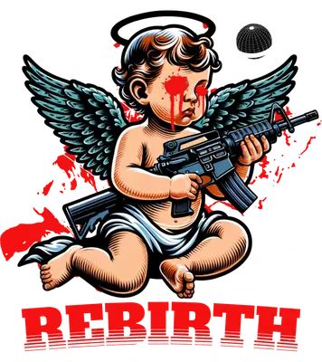 Edgy Cherub with AR-15 DTF Transfer | Rebirth Angel Iron On