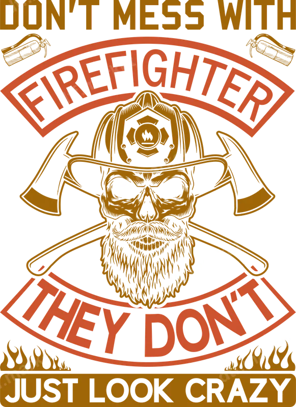 See allThis powerful DTF transfer features an edgy, bearded skull proudly wearing a firefighter helmet, complete with crossed axes and flame details. The bold text declares, "DON'T MESS WITH FIREFIGHTER THEY DON'T JUST LOOK CRAZY," conveying a strong and humorous message about these brave heroes. This ready to press design is perfect for showcasing respect and a bit of attitude. This unique heat transfer is ideal for firefighters, their families, and supporters who want to display admiration and humor. It makes an excellent gift for birthdays, Father's Day, or promotions. Perfect for fire station events or personal wear, this apparel transfer celebrates the fearless men and women who serve our communities. Applying this heat press design is incredibly easy, making customization accessible for everyone. Our premium DTF transfers work beautifully on a wide range of fabrics, including cotton, polyester, and various blends. For best results, use a heat press at 300-325°F for 15 seconds with medium pressure. It can also be applied with a household iron. Best of all, there's no weeding required, saving you time and effort. Experience superior quality with every direct to film transfer from dtf.market. Our designs boast incredibly vibrant colors and sharp details, ensuring your finished product stands out. Engineered to be crack-resistant and soft to the touch, this iron on decal will withstand countless washes and wear. We use professional-grade DTF film with strong adhesive, guaranteeing a durable and long-lasting print for any garment.