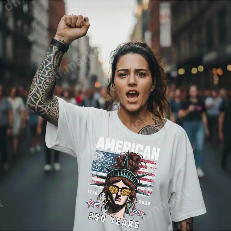 See allShow your American pride with this bold DTF transfer featuring an edgy Lady Liberty design. She sports cool sunglasses with a unique pizza pattern and a stylish messy bun, set against a distressed American flag backdrop. The text "AMERICAN 1776 2026 250 YEARS" commemorates the upcoming quarter-millennium of US independence, offering a rebellious yet patriotic statement. This ready to press design is perfect for customizing your apparel with unique flair. This heat press design is ideal for patriots, history enthusiasts, and anyone looking to celebrate American heritage with a modern, edgy twist. It's a fantastic choice for 4th of July celebrations, Memorial Day, patriotic events, political rallies, or as a distinctive gift for friends and family who appreciate unique American designs. Quickly customize your garments for any national holiday. Our premium direct to film transfers are crafted for effortless application on a variety of fabrics, including cotton, polyester, and their blends. Simply use a heat press at 300-325°F for 15 seconds with medium pressure, then cold peel for a perfect finish. For those using a household iron, ensure firm and even pressure. Best of all, there's no tedious weeding or layering involved, making this iron on transfer incredibly user-friendly. Experience professional-grade quality with vibrant colors, exceptional wash durability, and a soft hand feel. Each apparel transfer is printed on high-quality DTF film using premium inks, guaranteeing your design resists cracking and fading. Enjoy a durable, long-lasting look that maintains its appeal wash after wash, making it a reliable choice for all your custom creations.