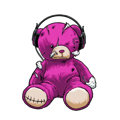 Edgy Pink Distressed Teddy Bear with Headphones DTF Transfer