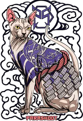 Edgy Samurai Sphynx Cat DTF Transfer | Japanese Style Ready to Press Iron On