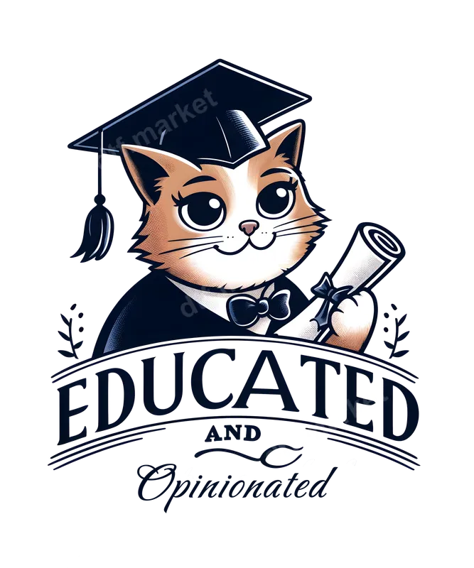 See allThis charming DTF transfer features an adorable, wide-eyed cat proudly sporting a graduation cap and gown, clutching a rolled diploma. Below the triumphant feline, the playful text reads "EDUCATED AND Opinionated" in a stylish, split font, capturing a witty and intelligent vibe. It's a perfect blend of cute and clever, making it an excellent ready to press design for anyone who appreciates humor and celebrates their accomplishments. This unique design is ideal for recent graduates across all academic levels, from high school to university, masters, or even PhD. It's a fantastic gift for students, teachers, professors, or anyone in academia who loves cats and has a sharp wit. Perfect for graduation parties, celebratory gatherings, or simply to show off your smarts and personality on everyday apparel. Applying this high-quality heat transfer is incredibly easy, making it perfect for both beginners and experienced crafters. Our ready to press transfer works seamlessly on a wide range of materials, including cotton, polyester, and various fabric blends. For best results, use a heat press at 300-325°F for 15 seconds with medium pressure, then cold peel. You can also use a household iron for smaller applications. Forget the hassle of weeding, as this iron on transfer is completely prepped and ready for immediate application to your favorite garments, creating stunning t-shirt transfers with minimal effort. Experience vibrant colors and crisp details with our professional-grade DTF film. This durable heat press design boasts excellent wash fastness, is crack-resistant, and offers a soft-to-the-touch feel that integrates beautifully with the fabric. The strong adhesive ensures your design stays put, providing a long-lasting, high-quality finish that rivals screen printing.