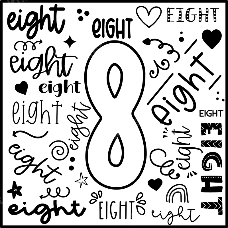 Eight Birthday Number DTF Transfer | Ready to Press Age 8 Design