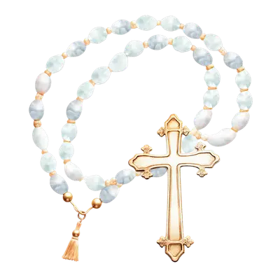 Elegant Rosary Gold Cross Pastel Beads Christian DTF Transfer