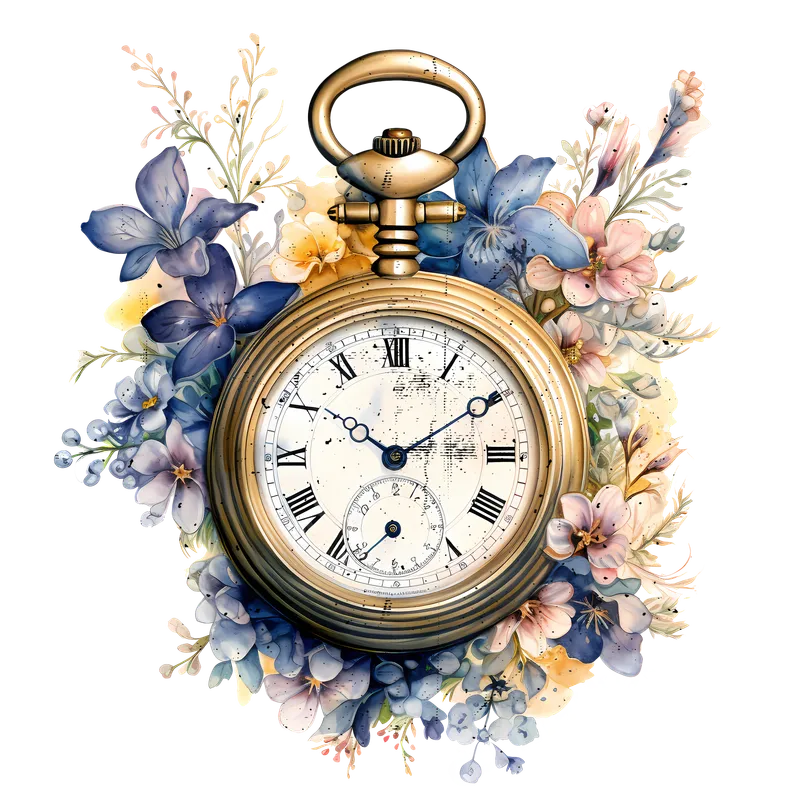 Elegant Vintage Pocket Watch Floral DTF Transfer Design