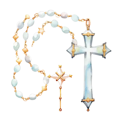Elegant Watercolor Rosary Cross DTF Transfer | Ready to Press Faith Design