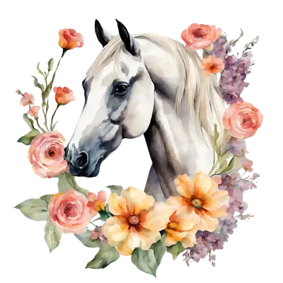 Elegant White Horse & Flowers DTF Transfer | Ready To Press Design