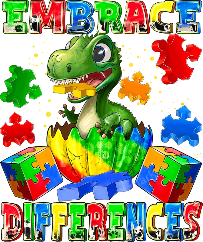Embrace Differences Dinosaur DTF Transfer | Autism Awareness Puzzle Pieces