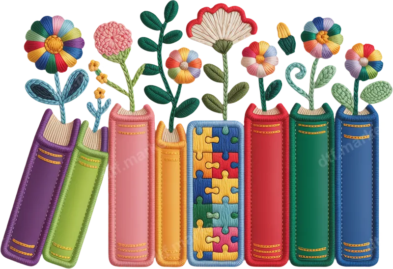 See allImmerse yourself in the charm of our unique embroidered books and growing flowers DTF transfer. This delightful design features a colorful row of books, each with intricate stitching details, from which vibrant, textured flowers and green foliage sprout upwards. One book prominently displays a playful puzzle piece pattern, symbolizing connection and diverse learning. The overall aesthetic is whimsical, educational, and full of life, making it a perfect ready to press transfer for those who cherish knowledge and growth. This versatile heat transfer design is ideal for a wide array of audiences and occasions. It’s a heartfelt choice for teachers, librarians, and educators, perfect for back-to-school events, teacher appreciation gifts, or as a thoughtful present for graduation. Book club members, avid readers, and anyone passionate about lifelong learning will also adore this intricate design. It's also suitable for craft enthusiasts looking for a unique iron on decal that combines art, nature, and education. Our high-quality direct to film transfer is designed for easy application on almost any fabric type, including cotton, polyester, and their blends. Simply use a heat press at 300-325°F for 15 seconds with medium pressure, or follow instructions for a household iron. This ready to press transfer requires no weeding or complicated layering, saving you time and effort. Just peel, press, and enjoy your beautifully customized apparel or accessories. Experience premium quality with our professional-grade DTF transfer. The vibrant colors and intricate details of the embroidered books and flowers will truly pop on your chosen garment, resisting cracking and fading through washes. Manufactured using durable DTF film with a strong adhesive, this heat press design ensures a soft-to-touch finish that feels like part of the fabric. Create stunning, long-lasting customized items with ease and confidence.