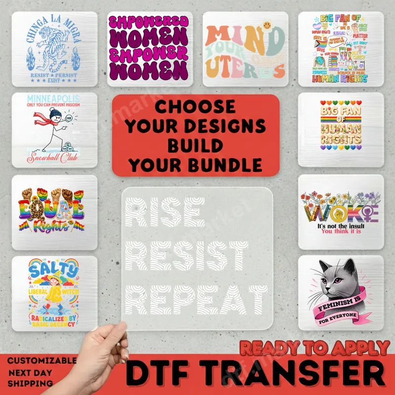 See allElevate your apparel with this bold "Empowered Women Empower Women" DTF transfer, featuring vibrant pink and purple retro typography. This powerful and uplifting design is a ready to press statement of solidarity and strength, perfect for showcasing your commitment to women's empowerment. Our premium direct to film transfer ensures a striking addition to any garment. This inspiring heat transfer is ideal for feminists, women's rights advocates, and anyone who believes in uplifting their community. It makes a fantastic gift for friends, sisters, mentors, or colleagues for International Women's Day, Women's History Month, protest events, or simply as an everyday reminder of collective power. Use this heat press design to personalize gifts or create merchandise for social justice initiatives. Applying this professional-grade apparel transfer is simple and requires no weeding. It works seamlessly with a heat press at 300-325°F for 15 seconds with medium pressure, or can be easily applied with a household iron. Suitable for a wide range of materials, including cotton, polyester, and their blends, making it a versatile iron on transfer for various projects. Experience superior quality with our durable heat press ready design. Each shirt design boasts vibrant, crack-resistant colors and a soft-touch finish that feels like part of the fabric. Crafted on professional DTF film with strong adhesive, your custom transfer will withstand countless washes, keeping your message bold and clear for years to come.