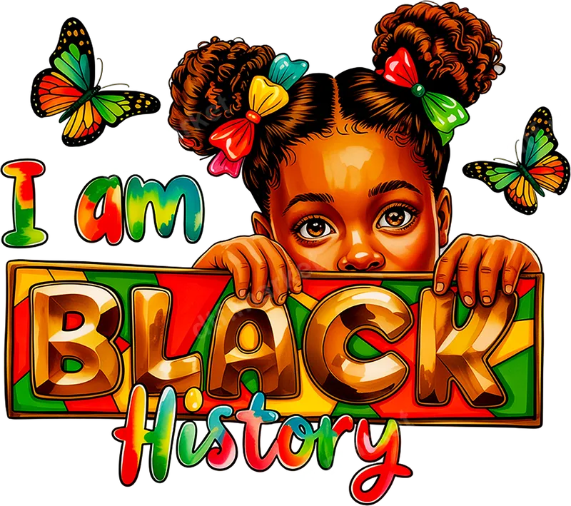 Empowering "I Am Black History" Girl DTF Transfer with Butterflies