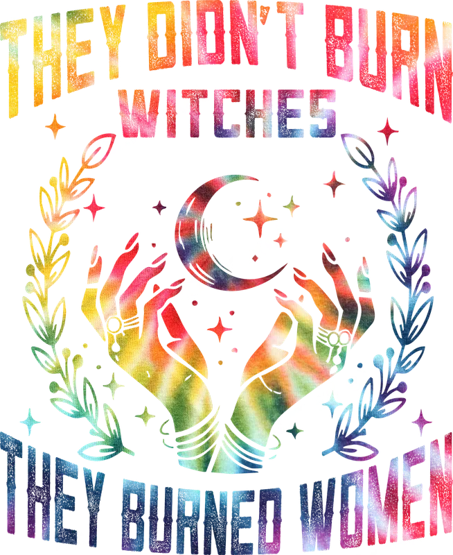 See allThe design features powerful hands cradling a crescent moon and stars, encircled by organic leafy branches. The impactful statement "THEY DIDN'T BURN WITCHES THEY BURNED WOMEN" is rendered in a vibrant, distressed tie-dye texture, giving it a unique retro and mystical feel. This eye-catching DTF transfer is a powerful statement piece, ready to press onto your favorite apparel. This ready to press transfer is ideal for feminists, modern mystics, spiritual individuals, and anyone who appreciates historical truth and strong female empowerment. It makes a fantastic gift for friends, sisters, or mothers who stand for justice and celebrate their inner strength. Perfect for casual wear, protest events, or simply expressing a bold personal style. Applying this apparel transfer is simple and straightforward. It adheres beautifully to a wide range of fabrics, including 100% cotton, polyester, and various blends. For best results, use a heat press at 300-325°F for 15 seconds with medium pressure, then peel cold. While a heat press is recommended for professional results, you can also achieve excellent adhesion with a household iron following careful instructions. Enjoy a vibrant design with no weeding required. Our direct to film transfers are crafted using premium DTF film and high-quality inks, ensuring exceptional vibrancy and durability. The colors are rich and won't fade or crack even after multiple washes. You'll love the soft-to-touch feel of the design on your garment, which integrates seamlessly without the stiffness often found in other heat press designs. These ready to press transfers offer professional-grade results every time.