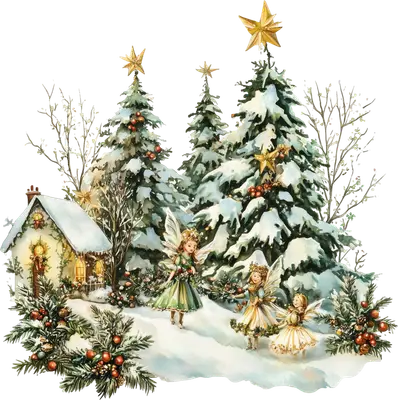 Enchanted Christmas Fairies Snowy Cottage DTF Transfer