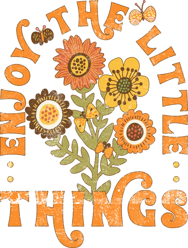 See allEmbrace a touch of retro charm and positive vibes with our "Enjoy The Little Things" vintage floral DTF transfer. This delightful design features distressed, groovy lettering framed by a beautiful bouquet of stylized sunflowers and daisies in warm oranges, yellows, and earthy browns, accented with delicate butterflies. It's a perfect direct to film transfer for adding a nostalgic yet optimistic message to any garment. Ideal for anyone who loves boho aesthetics, vintage fashion, or simply a reminder to appreciate life's small joys. This heat transfer is a thoughtful gift for moms, grandmas, friends, or yourself, making it perfect for Mother's Day, birthdays, or just because. Use this iron on transfer to personalize apparel for spring and summer events, or to create unique gifts that truly speak from the heart. Applying this heat press ready design is quick and easy. Simply use a heat press at 300-325°F for 15 seconds. There's no weeding required – just press and peel! Our premium DTF transfers work beautifully on a wide range of materials, including cotton, polyester, and their blends. Transform t-shirts, hoodies, sweatshirts, tote bags, denim jackets, and even infant onesies with this versatile apparel transfer. Experience superior quality with our vibrant, crack-resistant, and incredibly soft-touch DTF prints. Crafted with premium DTF film and strong adhesive, this ready to press transfer ensures your design lasts wash after wash, maintaining its color and integrity. Add a timeless message of joy and a pop of vintage style to your wardrobe or small business inventory with ease.