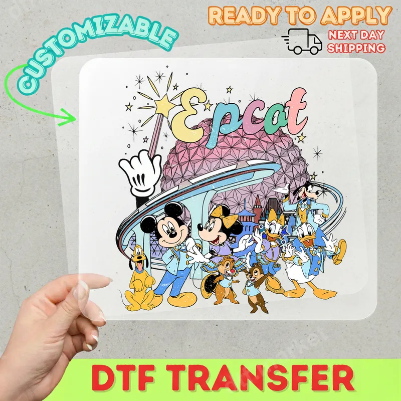 Epcot Disney Friends DTF Transfer | Mickey Minnie Goofy Donald Chip Dale
