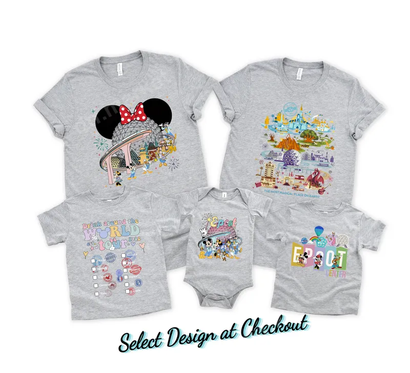 See allEmbark on a magical journey with our exclusive Epcot Disney World DTF Transfer collection, perfect for creating memorable family apparel. This vibrant selection features various ready to press designs celebrating the iconic Epcot park, capturing the spirit of Disney magic and adventure. Choose from designs depicting classic Mickey and Minnie Mouse alongside Spaceship Earth, a detailed World Showcase map, the popular 'Drink Around the World' checklist, or playful Epcot Center graphics with beloved characters like Donald and Goofy. Each direct to film transfer brings beloved characters and landmarks to life on your favorite garments. These Epcot-themed transfers are ideal for families, couples, and Disney enthusiasts planning a magical vacation to Walt Disney World. They make fantastic personalized gifts for birthdays, anniversaries, or special family reunions, ensuring everyone has matching, unique gear for their park day. Whether you're a first-time visitor or a seasoned Epcot fan, these designs offer a fun and stylish way to show your love for the most magical place on Earth. The 'Drink Around the World' option also appeals to adults looking for a fun, themed heat press design for their World Showcase adventure. Our professional-grade DTF transfers are incredibly versatile and easy to apply. They work flawlessly on a wide range of fabrics, including 100% cotton, polyester, and cotton/poly blends, making them perfect for t-shirts, hoodies, sweatshirts, and even baby bodysuits. Simply use a heat press set at 300-325°F for 15 seconds with medium, even pressure. Unlike traditional vinyl transfer, there's absolutely no weeding required, saving you time and effort. Just press, peel (cold peel for best results), and wear! Experience exceptional quality with every apparel transfer. Our DTF prints boast incredibly vibrant colors, crisp details, and a soft, smooth feel that blends seamlessly with the fabric. They are designed to be highly durable, crack-resistant, and withstand countless washes, ensuring your personalized Disney gear looks fantastic for years to come. Get professional-looking results right from home with our premium heat press ready designs.