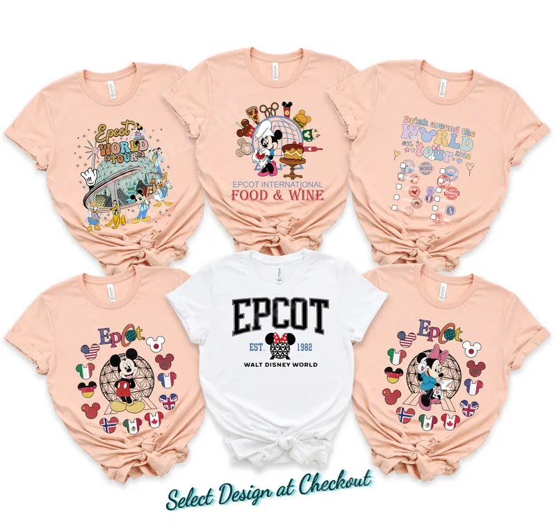 See allImmerse yourself in the magic of Epcot with our exclusive collection of ready-to-press DTF transfers. This unique offering features six distinct designs, each celebrating a different facet of Walt Disney World's Epcot, from the iconic Spaceship Earth 'World Tour' with beloved characters like Mickey, Donald, and Goofy, to the festive 'International Food & Wine' festival chef Mickey. You'll also find a charming 'Drink Around the World' passport design, a classic 'EPCOT EST. 1982' varsity style, and vibrant designs showcasing Mickey or Minnie Mouse surrounded by international flags, making them perfect heat press designs for your next trip. These versatile apparel transfers are ideal for anyone planning a Disney vacation, attending the Epcot Food & Wine Festival, or simply wanting to show off their love for Walt Disney World. They make fantastic matching family shirts for theme park trips, thoughtful gifts for Disney enthusiasts, or a fun way to commemorate special memories and experiences at Epcot. Applying these high-quality iron-on transfers is a breeze. They work beautifully on a wide variety of fabrics including cotton, polyester, and blends. Simply use a heat press at 300-325°F for 15 seconds with medium pressure, or apply with a household iron. Best of all, there’s no weeding required, so your custom transfer is ready to apply right out of the package. Crafted with professional-grade DTF film, our transfers boast incredibly vibrant colors that pop on any garment. They are designed to be durable, crack-resistant, and offer a super soft feel once applied, ensuring your personalized items look amazing and last wash after wash. Elevate your wardrobe with these ready to press Epcot designs.