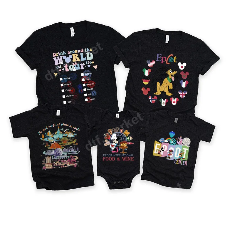 See allEmbark on your ultimate Epcot adventure with this colorful "Drink Around The World Tour est. 1982" DTF transfer. Featuring a fun checklist of global pavilions adorned with subtle Mickey ear stamps and country flags, this design captures the beloved Epcot tradition in a vibrant, retro style. It's a perfect ready to press transfer for creating personalized apparel that celebrates your journey through the World Showcase. This unique heat press design is ideal for Disney World enthusiasts, Epcot festival-goers, and anyone planning a trip to the most magical place on earth. Celebrate anniversaries of your first Epcot visit, commemorate a family vacation, or create matching shirts for a group of friends doing their own "Drink Around The World" tour. It also makes a fantastic gift for fellow Disney park lovers. Applying your Epcot-themed heat transfer is simple and professional. These direct to film transfers adhere beautifully to a wide range of materials, including 100% cotton, polyester, and various blends. For best results, use a commercial heat press at 300-325°F for 15 seconds with medium, even pressure. A household iron can also be used with careful application. No weeding or layering required, making customization quick and easy. Experience superior quality with our professional-grade DTF transfers. Each iron on transfer boasts incredibly vibrant colors, exceptional durability, and a soft, smooth feel once applied. Our premium DTF film ensures crack-resistant designs that stand up to countless washes, maintaining their stunning appearance over time. Transform plain garments into cherished Epcot souvenirs with ease.