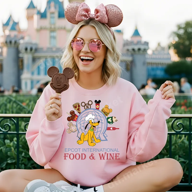 See allThis delightful DTF transfer features everyone's favorite pup, Pluto, donned in a chef's hat, ready to explore the Epcot International Food & Wine Festival. Surrounding the iconic Spaceship Earth globe are an array of delectable treats and drinks, from Mickey-shaped pretzels and ice cream bars to pizza, burgers, and wine glasses, capturing the culinary spirit of the event. This vibrant, ready to press design is perfect for creating custom apparel that showcases your love for Disney, delicious food, and unforgettable festival experiences. Ideal for Disney World enthusiasts, Epcot Food & Wine Festival attendees, and any foodie who adores Pluto and Disney parks. This heat transfer makes a fantastic gift for friends and family planning a trip to the festival, or as a fun way to commemorate past visits. It’s perfect for crafting matching family shirts, souvenir sweatshirts, or unique iron on transfers for group outings to the park, making every moment even more magical. Our premium heat press ready transfers are designed for easy application on a wide variety of fabrics, including cotton, polyester, and their blends. For best results, apply with a heat press at 300-325°F for 15 seconds with medium pressure, then perform a warm or cool peel depending on the specific film. For home crafters, a household iron can also be used with careful, even pressure. Enjoy a seamless process with no weeding required, making custom shirt designs effortless. Experience superior quality with our DTF transfers, known for their vibrant colors that truly pop and excellent crack resistance. The soft-touch feel ensures maximum comfort on any garment. Each apparel transfer is professionally printed on high-grade DTF film with a strong, durable adhesive, guaranteeing a long-lasting and professional finish on your custom creations.