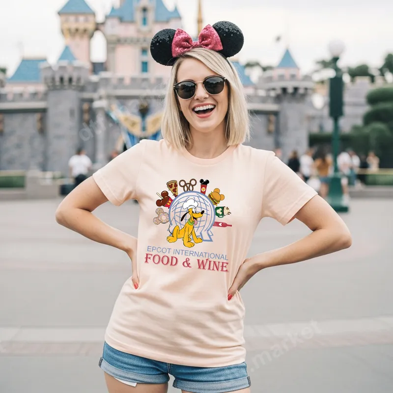 See allThis delightful DTF transfer features Pluto wearing a chef's hat, surrounded by an array of global culinary delights and the iconic Epcot International Food & Wine Festival logo. It's a perfect ready to press design for anyone looking to celebrate their love for Disney, food, and world travel. This vibrant heat transfer brings the magic of the festival right to your wardrobe, making it easy to create custom apparel with minimal effort. Ideal for Disney enthusiasts, foodies, and Epcot visitors, this apparel transfer is perfect for family trips to Walt Disney World, themed parties, or simply showing off your passion for the Food & Wine Festival. It makes a fantastic gift for friends and family planning a Disney vacation or anyone who cherishes their Epcot memories. Get ready to show your Disney spirit with this fun design on any garment. Applying this iron on transfer is quick and easy. It works beautifully on a wide range of fabrics including cotton, polyester, and their blends, making it versatile for any garment. Simply use a heat press at 300-325°F for 15 seconds with medium pressure, or follow specific instructions for a household iron. Best of all, there's no weeding required, saving you significant time and effort compared to other methods. Our high-quality DTF transfers are known for their exceptional durability and vivid colors. This shirt design is crack-resistant, peel-resistant, and offers a soft, smooth feel once applied. Crafted with professional-grade DTF film and strong adhesive, your custom transfer will withstand countless washes while maintaining its vibrant appearance, ensuring your personalized items look great for years to come.