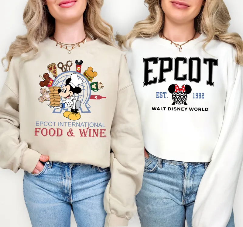 See allThis lively DTF transfer features everyone's favorite mouse, Mickey, dressed as a charming chef, surrounded by a delicious array of international foods like pizza, pretzels, burgers, and wine, all set against the iconic Epcot Spaceship Earth globe. The design proudly displays "EPCOT INTERNATIONAL FOOD & WINE," capturing the festive spirit of the renowned culinary event. This ready to press design is perfect for bringing a touch of Disney magic and gastronomic delight to any garment or accessory. Ideal for Disney enthusiasts, foodies, and anyone planning a trip to Walt Disney World, especially during the Epcot International Food & Wine Festival. This heat press transfer makes a fantastic personalized gift for family and friends, or a memorable souvenir to commemorate your park adventures. Create matching shirts for your group, add a unique flair to a tote bag, or make a custom apron for the home chef in your life. Applying this iron on transfer is a breeze! It works seamlessly on a wide range of materials, including cotton, polyester, and various fabric blends. For best results, use a heat press at 300-325°F for 15 seconds with medium pressure. Even a household iron can achieve great results. Forget the hassle of weeding vinyl transfers; this direct to film transfer is pre-masked and ready for immediate application, saving you time and effort. Experience professional-grade quality with every application. Our DTF transfers boast vibrant, true-to-color designs that are incredibly durable, crack-resistant, and soft to the touch. Made with premium DTF film and a strong adhesive, your apparel transfer will withstand countless washes and wear, ensuring your Epcot Food & Wine design looks fantastic for years to come. Elevate your wardrobe with this high-quality, long-lasting shirt design.