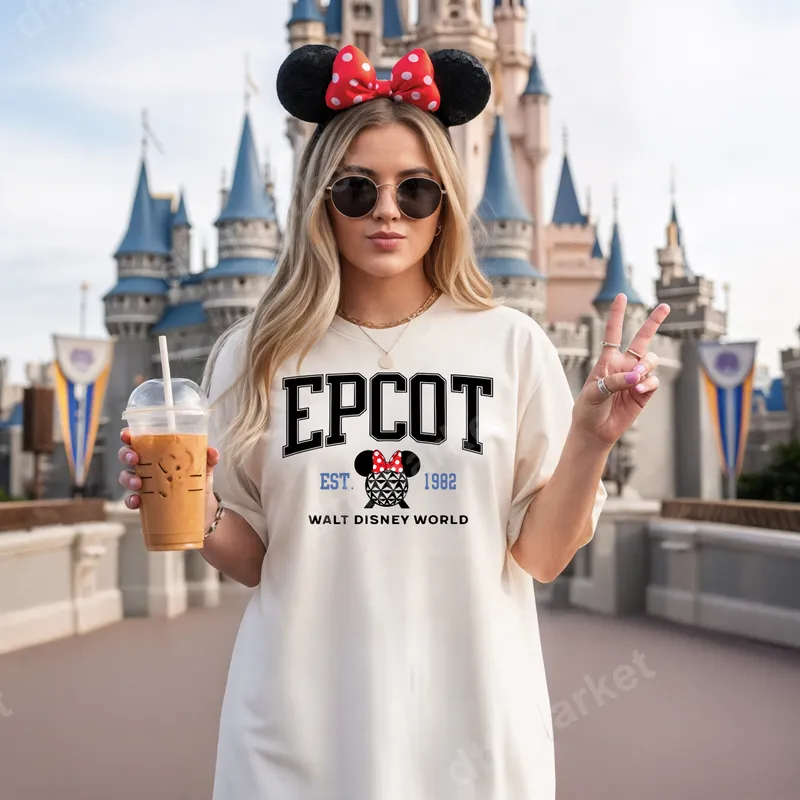 See allThis unique DTF transfer features a stylish collegiate "EPCOT" design, proudly displaying "EST. 1982" and "WALT DISNEY WORLD". A charming pineapple icon with classic Minnie Mouse ears and a red polka dot bow adds playful magic. This high-quality direct to film transfer is ready to press, perfect for custom apparel celebrating Epcot in a chic, retro way. This versatile heat transfer is ideal for Disney vacation planners, Epcot enthusiasts, and anyone customizing gear for their next trip to Walt Disney World. It makes an excellent gift for Disney-loving friends, family, or for matching shirts for a group vacation or family reunion. Stand out with this unique shirt design that captures the spirit of Epcot's legacy. Applying this iron on transfer is simple. For best results, use a heat press at 300-325°F for 15 seconds with medium pressure. It can also be applied with a household iron, following instructions. Forget weeding; this heat press design comes ready for immediate application, saving time and effort on cotton, polyester, and blends. Our professional-grade DTF transfers boast vibrant colors and sharp details. Designed for durability, this apparel transfer is crack and peel-resistant, and incredibly soft to the touch. Printed on premium DTF film with strong adhesive, it ensures a long-lasting, high-quality finish on all your garments and accessories.