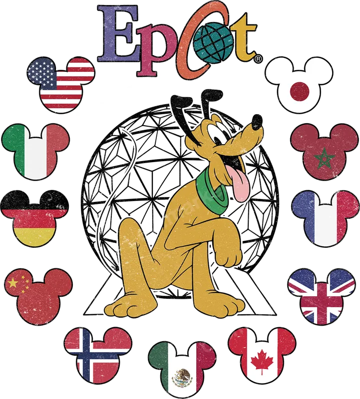 Epcot Pluto World Showcase Flags DTF Transfer | Disney Ready to Press