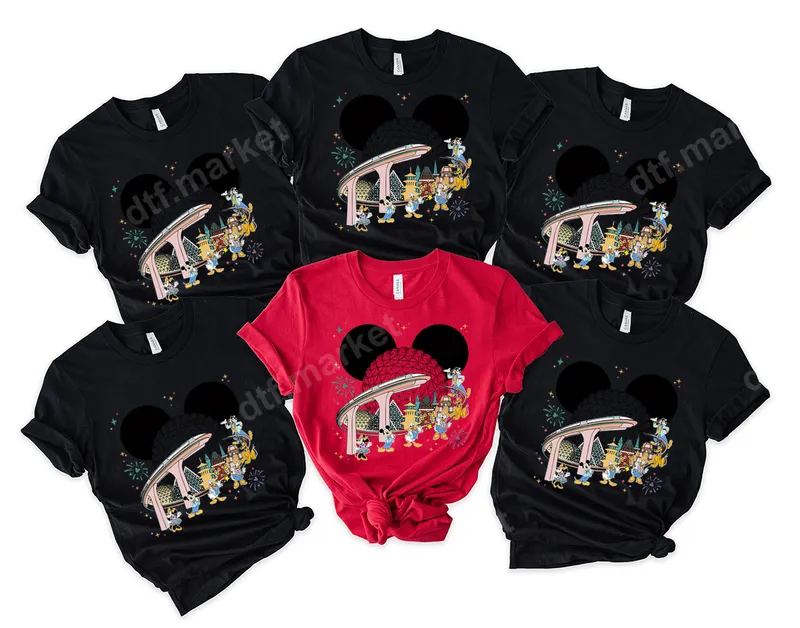 See allThis vibrant DTF transfer captures the magic of Epcot's World Showcase, featuring beloved Disney characters like Mickey, Minnie, Donald, Goofy, Pluto, and Daisy in global attire, surrounding the iconic Spaceship Earth. The design is accented with festive fireworks and the monorail, making it a perfect celebration of international fun. This ready to press design brings all the joy of a theme park adventure right to your garments. Ideal for Disney enthusiasts, families planning a magical vacation, or anyone who cherishes Epcot memories. This heat press transfer makes fantastic matching family shirts for theme park trips, a thoughtful gift for birthdays, or unique apparel for Epcot festivals. It's perfect for creating custom gear for travel groups or just showing off your love for global exploration and Disney charm. Applying this high-quality iron on transfer is simple. It works beautifully on a wide range of materials, including cotton, polyester, and various blends. For best results, use a heat press at 300-325°F for 15 seconds with medium pressure, then peel cold. A household iron can also be used with care. There's no tedious weeding required, so you can enjoy your custom creation faster. Experience professional results with this durable t-shirt transfer. Our DTF transfers are known for their incredibly vibrant colors, superior stretch, and crack-resistant finish, ensuring your design looks fresh and new even after many washes. The soft-touch feel and strong adhesive provide a comfortable, long-lasting application, making it an excellent alternative to traditional vinyl transfer options.