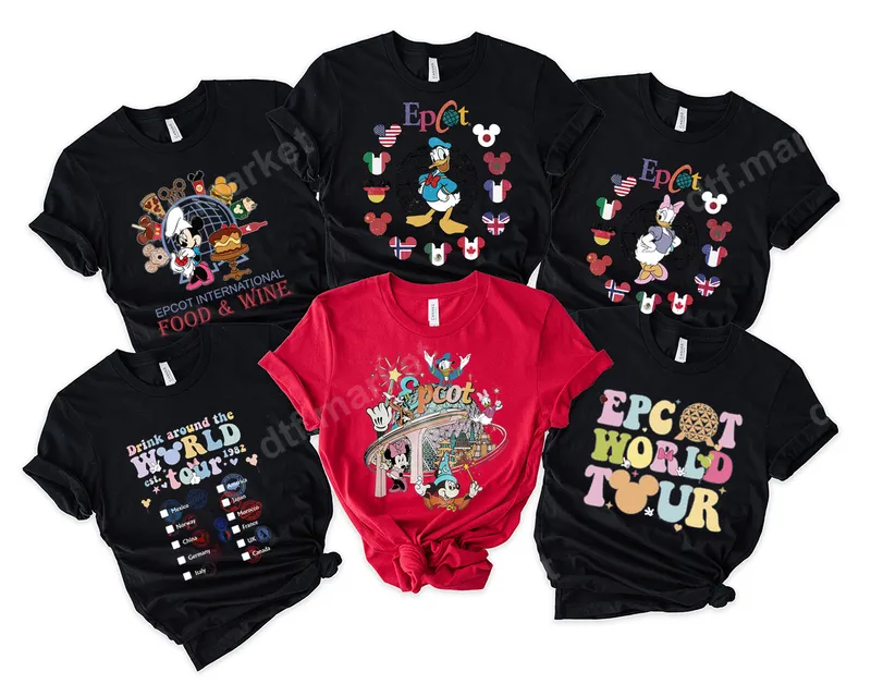 See allThis vibrant Epcot 'Drink Around the World est. 1982' DTF transfer captures the spirit of the World Showcase. Featuring a fun checklist of countries like Mexico, Japan, and Canada, each marked with a vintage Mickey head flag stamp, this ready to press design is perfect for your next theme park adventure. The retro-inspired lettering and distressed details give it a nostalgic charm, making it a unique iron on transfer for any Disney fan. Ideal for Disney World vacationers, Epcot enthusiasts, and groups planning a 'drink around the world' tour. This fun heat transfer makes an excellent gift for friends, family, or travel companions heading to the parks. Celebrate a special trip, anniversary, or simply show your love for Epcot's iconic experience with this memorable heat press design. It's also great for matching group shirts or bachelorette parties. Applying this apparel transfer is a breeze. Our direct to film transfers work seamlessly on a wide range of fabrics including cotton, polyester, and blends. Simply use a heat press at 300-325°F for 15 seconds with medium pressure, then cold peel. For home users, a household iron can also be used following detailed instructions. No complicated weeding or layering required, making customization easy and quick. Crafted with professional-grade DTF film, this heat press transfer delivers stunningly vibrant colors and a soft, smooth feel that stands the test of time. The durable print is crack-resistant and stretches with the fabric, ensuring your design looks fantastic wash after wash. Enjoy a high-quality finish that rivals screen printing, providing a professional look for all your personalized garments.