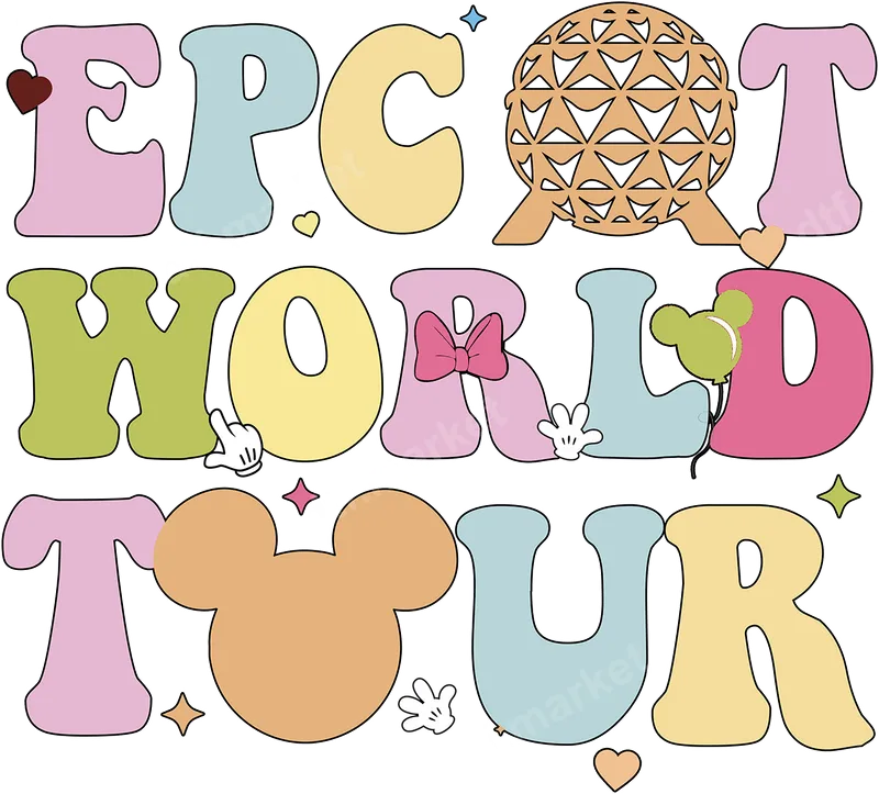 See allEmbark on a magical journey with our 'EPCOT World Tour' DTF transfer, featuring a delightful retro-inspired design. This vibrant direct to film transfer showcases the iconic Spaceship Earth and playful Mickey Mouse elements, all in charming pastel colors. It's a perfect ready to press design for anyone who loves theme park adventures and classic Disney aesthetics. This whimsical heat press transfer is ideal for Disney enthusiasts, families planning a vacation to Epcot, or anyone looking to add a touch of magic to their wardrobe. Perfect for matching family shirts, souvenir apparel, or gifts for friends who adore theme parks. Celebrate birthdays, family reunions, or simply show off your love for Epcot with this charming iron on design. Applying this high-quality heat transfer is a breeze! Our DTF transfers work beautifully on a wide range of fabrics, including cotton, polyester, and blends. Simply use a heat press at 300-325°F for 15 seconds with medium pressure, then cold peel for a professional finish. Say goodbye to tedious weeding – this heat press ready design makes customization quick and easy, even if you’re new to apparel transfers. Experience exceptional quality with our professional-grade DTF film. Each apparel transfer offers incredibly vibrant colors, superior wash durability, and a soft, lightweight feel that won't crack or peel. You'll love the seamless integration into your garments, creating custom apparel that looks fantastic and lasts through countless memories. This is not a vinyl transfer, ensuring a smooth, premium feel.