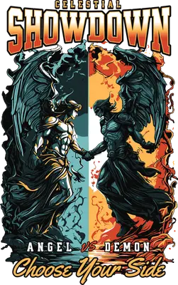 See allDive into an epic spiritual conflict with our 'Celestial Showdown: Angel vs Demon' DTF transfer. This striking design showcases a powerful winged angel and a formidable demon, locked in a symbolic handshake across a dividing line of light and shadow, fire and water. Bold text proclaims 'CELESTIAL SHOWDOWN' at the top and challenges you to 'CHOOSE YOUR SIDE' at the bottom. This ready to press design features vivid colors and intricate details, making it a powerful statement piece for any garment. This dramatic iron on transfer is perfect for individuals who love fantasy art, mythological themes, or enjoy expressing duality in their style. It's an ideal heat transfer design for gamers, graphic novel enthusiasts, and anyone drawn to the eternal struggle between good and evil. Small t-shirt businesses, Etsy sellers, and crafters looking for unique, edgy designs will find this a fantastic addition to their inventory, offering popular themes for a broad audience. Applying this heat press transfer is incredibly simple, suitable for cotton, polyester, cotton-poly blends, and even nylon fabrics. Achieve professional results with a heat press (recommended 300-325°F for 15 seconds, medium pressure) or a standard household iron. Say goodbye to tedious weeding – simply peel and press! Create custom t-shirts, hoodies, sweatshirts, tote bags, pillow covers, or denim jackets. For best longevity, wash your finished garment inside out and tumble dry low. Experience superior quality with this ready to press transfer. It boasts vibrant, full-color printing that captures every fine detail, ensuring your design truly pops. Our crack-resistant transfers feel soft to the touch, avoiding the heavy, stiff feel often associated with vinyl. Each direct to film transfer is expertly printed on premium DTF film with a robust adhesive backing, guaranteeing professional-grade application and enduring wear.