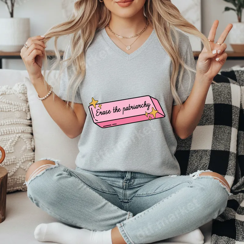 See allMake a powerful statement with our 'Erase the Patriarchy' DTF transfer, featuring a cute pink eraser design accented with sparkling stars. This eye-catching design, complete with a bold black outline and a chic script font, is a perfect way to express your advocacy. It's a high-quality DTF transfer, delivered to you ready to press directly onto your chosen garment, making customization quick and effortless. This design is ideal for feminists, women's rights advocates, and anyone passionate about social justice and equality. It makes a fantastic gift for friends, sisters, or colleagues who inspire you. Wear it proudly to rallies, protests, International Women's Day events, or as a daily declaration of your values, sparking conversations and spreading empowerment wherever you go. Our premium heat press transfer works beautifully on a wide variety of materials, including 100% cotton, 100% polyester, and all cotton/poly blends. For best results, apply with a heat press at 300-325°F for 15 seconds with medium pressure, then cold peel the film. For casual crafters, this iron on transfer can also be applied with a household iron with careful attention. Say goodbye to tedious weeding – simply press and wear! Experience superior print quality with vibrant, long-lasting colors that resist cracking and peeling. Each apparel transfer is crafted from professional-grade DTF film with a strong adhesive, ensuring a soft feel and durable finish after washing. Elevate your wardrobe with a design that speaks volumes and stands the test of time, transforming ordinary items into powerful statements.