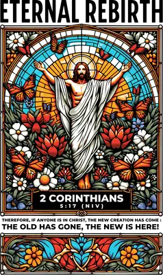 See allThis captivating "Eternal Rebirth" DTF transfer showcases a stunning stained-glass rendition of Jesus Christ with open arms, symbolizing hope and new beginnings. Vibrant orange butterflies flutter amidst a lush garden of white and red flowers, all framed within intricate, colorful borders. Topped with the powerful message "ETERNAL REBIRTH" and grounded by the scripture "2 CORINTHIANS 5:17 (NIV)", this design radiates spiritual renewal and faith. It's a powerful and meaningful "ready to press" design perfect for expressing devotion. This uplifting "iron on transfer" is ideal for individuals seeking to wear their faith proudly, or for church groups, youth ministries, and spiritual retreats looking for unifying apparel. It makes a thoughtful gift for Easter, baptisms, confirmations, or any occasion celebrating spiritual milestones. Small businesses specializing in faith-based apparel, Etsy sellers, and crafters will find this "heat transfer design" a beautiful and inspiring addition to their product lines, appealing to a broad Christian audience. Applying this "heat press transfer" is quick and easy, making it perfect for customizing a wide range of items. It adheres beautifully to cotton, polyester, cotton-poly blends, and even nylon fabrics. Simply use a heat press at 300-325°F for 15 seconds with medium pressure, or a household iron with firm, even pressure. There's no tedious weeding required—just peel and press! Create stunning "custom t-shirts", hoodies, sweatshirts, tote bags, pillow covers, and even denim jackets. For best results and lasting durability, wash garments inside out and tumble dry low. Experience professional quality with this "ready to press transfer". It boasts vibrant, full-color printing that captures every fine detail of the stained-glass artistry. The design is crack-resistant, offers a soft hand feel without the heavy bulk of traditional vinyl, and ensures exceptional durability. Each "direct to film transfer" is meticulously printed on premium DTF film, featuring a strong adhesive backing for flawless application and results that stand the test of time.