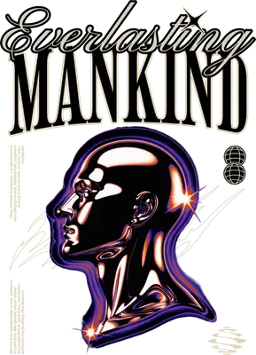 Everlasting Mankind Futuristic Metallic Head DTF Transfer