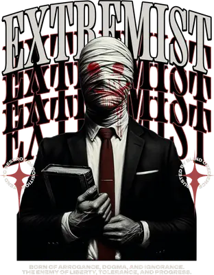 Unleash a bold message with our 'EXTREMIST' DTF transfer, a powerful design featuring a mysterious figure in a sharp suit, hands bound, and head wrapped in bandages, with striking red blood stains. The prominent 'EXTREMIST' text and critical undertones create an edgy, thought-provoking aesthetic. This high-quality direct to film transfer is ready to press, instantly elevating any garment with its impactful social commentary. This unique design is perfect for individuals who aren't afraid to express their views and challenge societal norms. It's an ideal iron on transfer for activists, students, artists, or anyone seeking to make a statement about dogma and ignorance. Small boutique owners and Etsy sellers looking for distinctive, conversation-starting heat transfer designs will find this a compelling addition to their inventory, offering a powerful way to express individuality. Applying this heat press transfer is simple and efficient. It adheres perfectly to a wide range of materials, including cotton, polyester, cotton-poly blends, and even nylon, making it incredibly versatile. Use a heat press at 300-325°F for 15 seconds with medium pressure, or apply with a household iron. No tedious weeding is required – just peel and press! Create stunning custom t-shirts, hoodies, sweatshirts, tote bags, denim jackets, or unique pillow covers. For best results, wash garments inside out and tumble dry low. Experience exceptional quality with every ready to press transfer. Our advanced printing technology ensures vibrant, full-color reproduction with incredibly fine detail, capturing every nuance of this powerful graphic. Enjoy a crack-resistant finish that's soft to the touch, without the heavy, stiff feel of traditional vinyl. Each direct to film transfer is printed on premium DTF film with a strong adhesive backing for professional, long-lasting results that endure.
