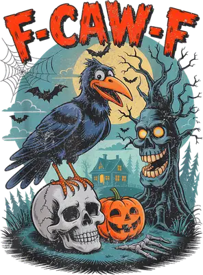 F-CAW-F Funny Halloween Crow Skull Jack-o'-Lantern DTF Transfer