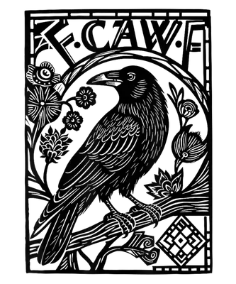 F. Caw Raven DTF Transfer | Woodcut Style Crow & Floral Heat Press Design