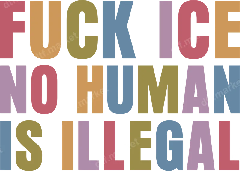 See allThis powerful DTF transfer features the bold, impactful message 'F*** ICE NO HUMAN IS ILLEGAL' in multi-colored, block lettering. Each letter is rendered in a different muted hue, creating a striking yet sophisticated aesthetic that demands attention. This ready to press design is perfect for making a clear social or political statement on any garment or accessory. Ideal for social justice advocates, human rights activists, and anyone passionate about immigrant rights, this heat transfer empowers you to wear your beliefs. It's perfect for protests, rallies, community events, or simply as everyday attire to spark conversations. This iron on decal makes a thoughtful gift for friends, family, or fellow activists. Applying this ready to press transfer is incredibly easy, suitable for both experienced crafters and beginners. Our high-quality custom transfer works seamlessly on cotton, polyester, and various blends. For best results, use a heat press at 300-325°F for 15 seconds with medium pressure, then peel cold. A household iron can also be used for this t-shirt transfer, though a heat press is recommended. Enjoy hassle-free application with no weeding required. Our premium DTF transfers ensure exceptional durability and a vibrant, long-lasting finish. Advanced ink technology provides crack-resistant designs that remain soft to the touch, even after multiple washes. Crafted with professional-grade DTF film and strong adhesive, this heat press ready design integrates seamlessly into your fabric, providing a high-quality, comfortable feel.