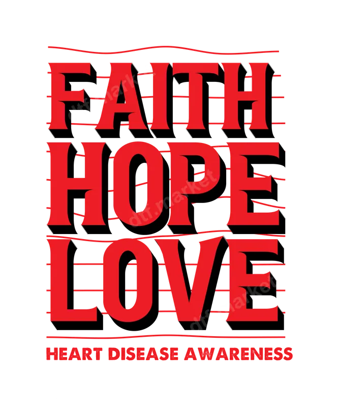 Faith Hope Love Heart Disease Awareness DTF Transfer | Ready to Press Design