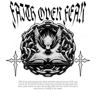 This powerful DTF transfer showcases the message "FAITH OVER FEAR" in a bold, gothic-inspired typeface. A majestic dove with outstretched wings perches upon an open Bible, symbolizing peace and spiritual wisdom. Heavy chains encircle the sacred texts, representing struggles overcome through steadfast belief, while subtle spiderweb details and stylized gothic crosses add a rugged aesthetic. This striking design is ready to press, offering deep meaning and intricate artistry. This inspiring design is perfect for Christian believers, spiritual seekers, and anyone drawing strength from faith to overcome challenges. Its edgy yet meaningful aesthetic also resonates with biker and motorcycle enthusiasts looking for a unique iron on transfer. Ideal for personal use, gifts of encouragement, or as a distinctive heat transfer design for small businesses crafting faith-based apparel. Inspire resilience and hope with every application. Applying this heat press transfer is simple and efficient. It adheres beautifully to cotton, polyester, cotton-poly blends, and even nylon. Achieve professional results using a heat press (300-325°F for 15 seconds, medium pressure) or a household iron. No weeding required – just peel and press! Perfect for custom t-shirts, hoodies, sweatshirts, tote bags, or pillow covers. For lasting durability, wash garments inside out and tumble dry low. Experience premium quality with every ready to press transfer. This design boasts vibrant, full-color printing with exceptional fine detail. Transfers are crack-resistant and offer a soft, comfortable feel, avoiding heavy, stiff textures. Each direct to film transfer is printed on high-grade DTF film with a strong, reliable adhesive backing, guaranteeing a professional and enduring finish for all your apparel projects.
