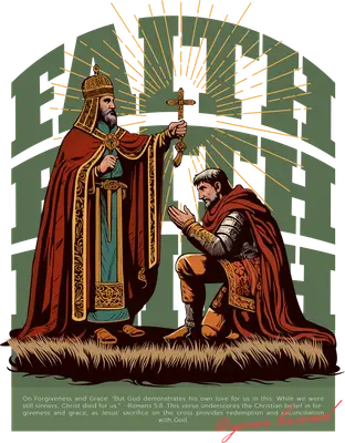 This profound DTF transfer beautifully illustrates Christian faith, depicting a robed figure presenting a cross to a kneeling man, set against a bold "FAITH" backdrop. Emphasizing forgiveness and grace, the design features Romans 5:8: "But God demonstrates his own love for us in this: While we were still sinners, Christ died for us." Its vibrant, classic graphic style makes this an instantly impactful, ready to press design, perfect for expressing deep spiritual conviction. This inspiring design is perfect for Christian individuals, church groups, Bible study members, and anyone looking to wear their faith proudly. It makes a thoughtful gift for confirmations, baptisms, Easter, or as an everyday statement of belief. Small businesses specializing in Christian apparel will find this a high-demand iron on transfer, ideal for creating unique merchandise. Crafters and Etsy sellers can easily incorporate this powerful heat transfer design into their faith-based product lines. Applying this premium heat press transfer is simple and efficient, adhering flawlessly to cotton, polyester, blends, and even nylon. Achieve professional results with a heat press (300-325°F for 15 seconds, medium pressure) or a household iron. Forget tedious weeding; simply peel and press! It's perfect for custom t-shirts, hoodies, sweatshirts, and tote bags. For best care, wash inside out and tumble dry low to maintain vibrant colors and lasting durability. Our ready to press transfer boasts exceptional quality, delivering vibrant, full-color printing with crisp lines and intricate detail. Enjoy a soft, flexible feel that resists cracking and peeling, far superior to traditional vinyl. Each direct to film transfer is meticulously printed on durable, premium DTF film, featuring a robust adhesive backing designed to ensure a smooth application and professional, long-lasting results for every garment you customize.