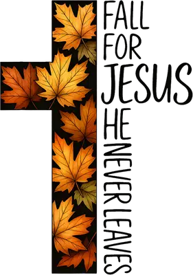 Fall for Jesus He Never Leaves Cross DTF Transfer Autumn Leaves
