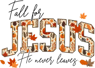 Fall for Jesus He Never Leaves DTF Transfer | Autumn Christian Faith Design